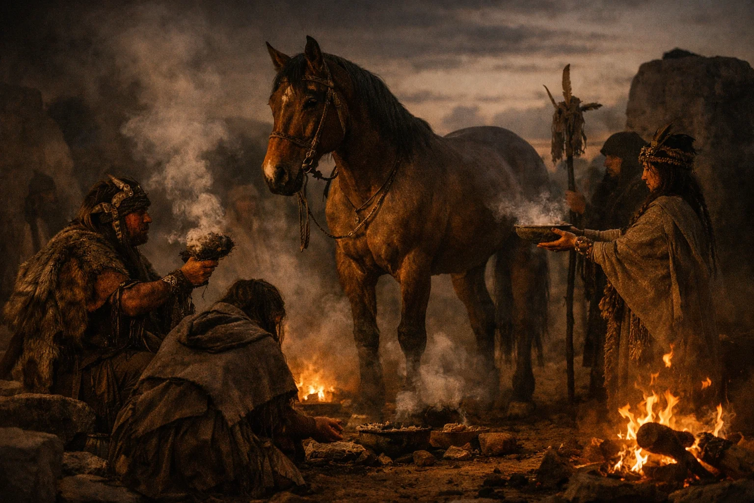 Los yacimientos arqueológicos de la cultura Botai en Kazajistán ofrecen las primeras evidencias claras: restos de caballo con marcas de brida en los dientes, huesos procesados como alimento, y lo más revelador, residuos de grasa de yegua en cerámica que sugieren la producción de kumis —leche fermentada de caballo, aún consumida hoy en Asia Central.